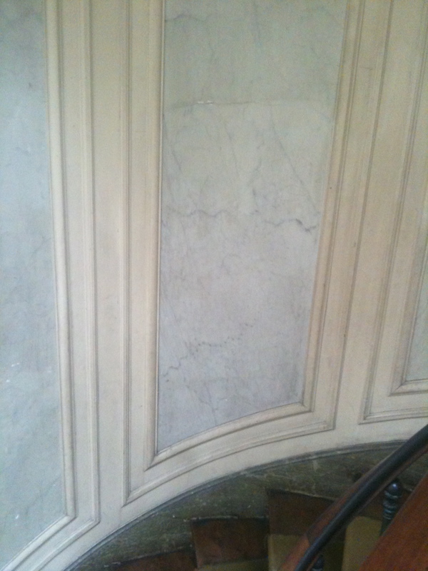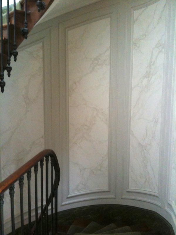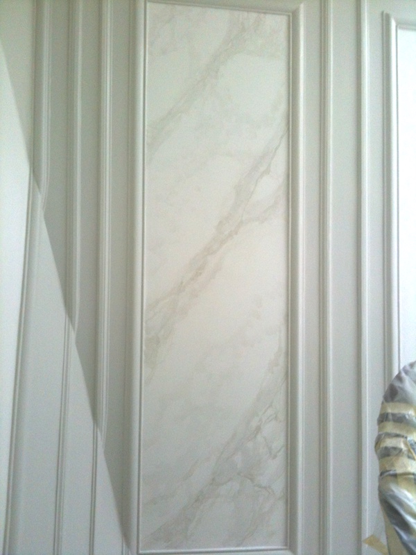 Décors peints en faux marbres décoratifs sur les panneaux,