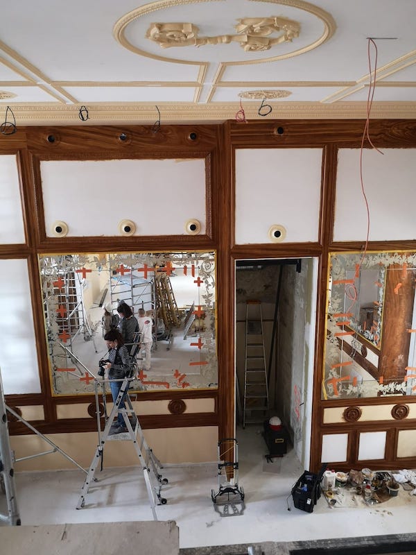 Retour en images sur un chantier magnifique : Sous la direction artistique de Mme Cordélia de Castellane & la direction de chantier de Mme Stéphanie Amyot. Notre équipé 100% féminine a réalisé les fabuleux décors muraux de la salle Orient du Café Lapérouse, à l'Hôtel de la Marine. Tout ce qui semble être en bois sur les photos est en réalité complètement réalisé en peinture. Un grand merci à Mme Chloé Costes.