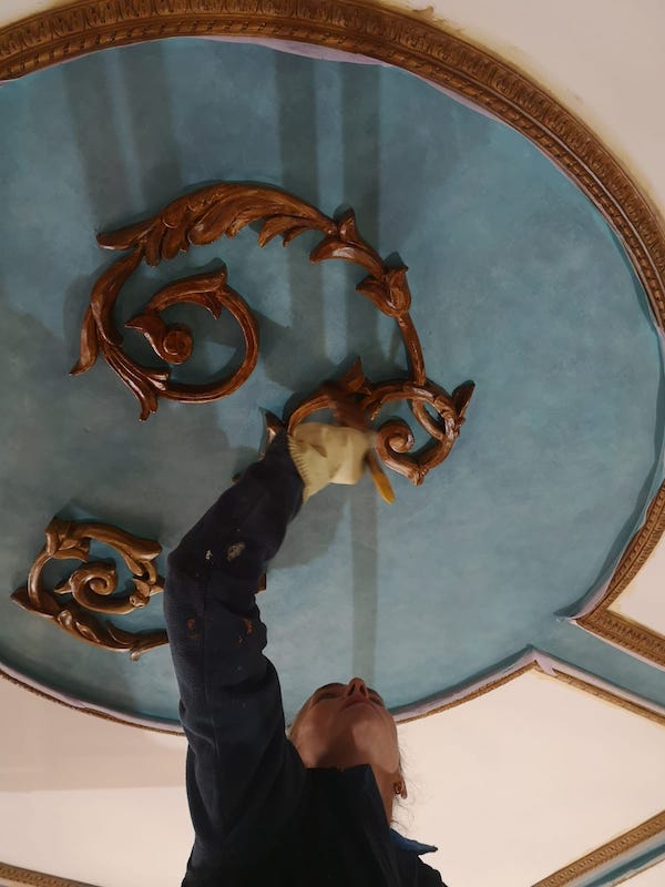 Mise en teinte de rosace au plafond
